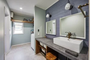 海外の住宅設計では、こうした「家事動線を最短化するクローゼット配置」が定番です。特にウォークインクローゼットは広さと造作の自由度が高いため、家族それぞれのスペースを色分けしたり、お気に入りの壁紙でアクセントをつけたりと、機能的でありながらおしゃれな空間に仕上げることができます。