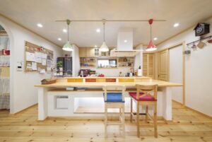 さらに、キッチンからリビングや和室(キッズスペース)が見渡せる設計にすることで、料理や片付けをしながらでも子どもの様子を見守れます。アイランドキッチンやペニンシュラキッチンは、この目的に最適な選択肢です。