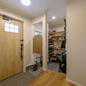 収納量の目安としては、家族4人なら1.5〜2畳程度をひとつの基準にしつつ、アウトドア用品やベビーカーなどを多く収納したいご家庭では、2〜3畳程度を検討すると安心です。敷地条件や間取り全体とのバランスも踏まえて、優先順位を決めながら広さを調整していきましょう。